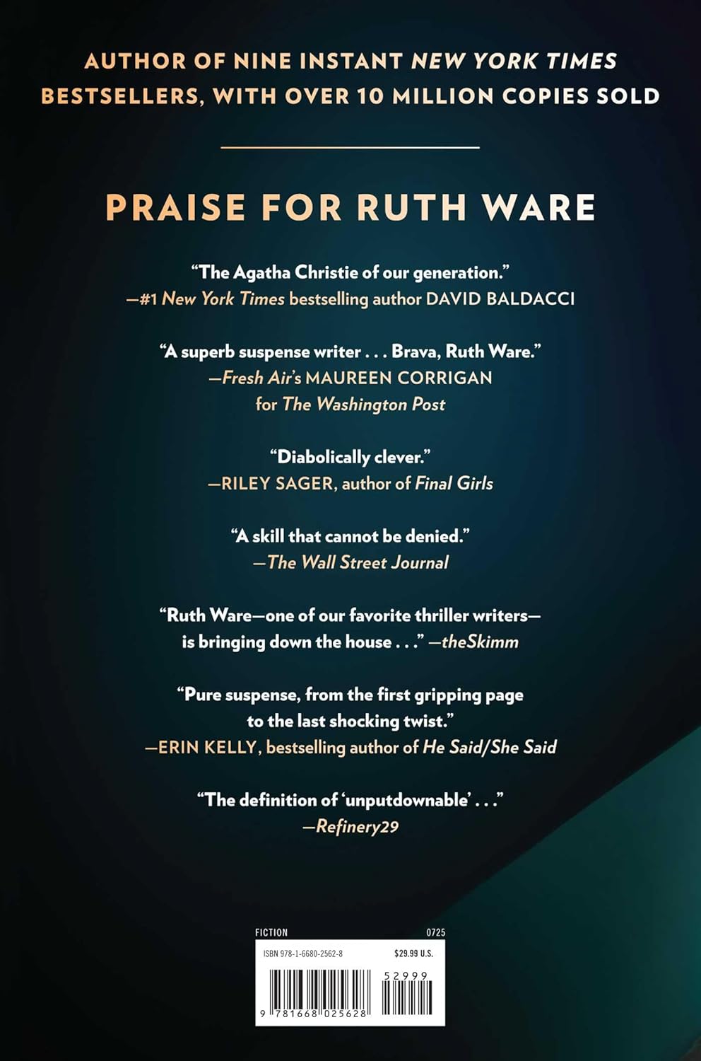 In this follow-up to #1 New York Times bestselling author Ruth Ware’s multi-million copy mega-hit The Women in Cabin 10, Lo Blacklock returns to attend the opening of a luxury hotel, only to find herself in a white-knuckled race across Europe.